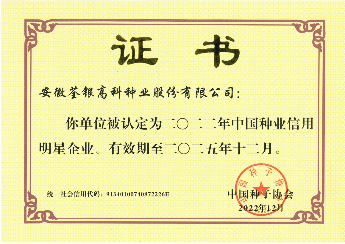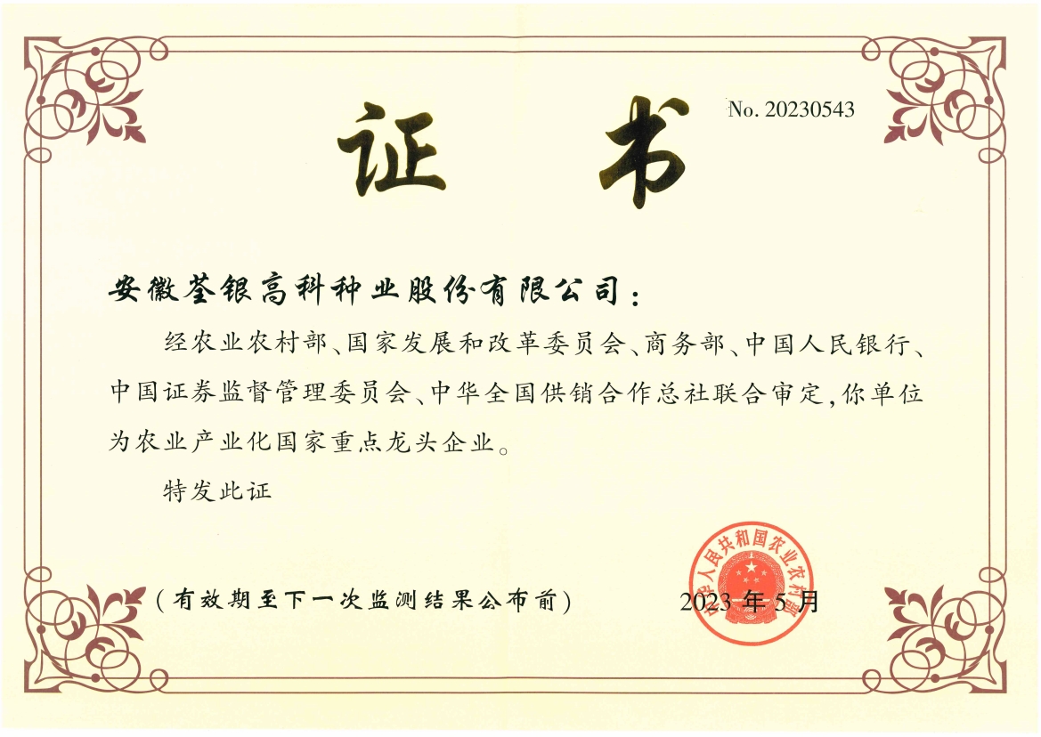 安徽荃銀高科種業(yè)股份有限公司是一家“以種業(yè)為核心、農業(yè)服務為延伸、探索和創(chuàng)新農業(yè)多元化發(fā)展”的現代高科技種業(yè)上市公司,證券代碼:300087。公司注冊資金9.47億元,系“中國種業(yè)領軍企業(yè)、農業(yè)產業(yè)化國家重點龍頭企業(yè)、國家高新技術企業(yè)、農業(yè)部首批農作物種子育繁推一體化企業(yè)、中國種業(yè)信用明星企業(yè)"。在國內控股子公司20多家,在國外設立分支機構4家,良種銷售至全國20多個省(市、區(qū)),出口覆蓋20多個國家與地區(qū),種業(yè)綜合實力、雜交水稻研發(fā)、推廣及海外業(yè)務規(guī)模均居全國種子企業(yè)前2位。